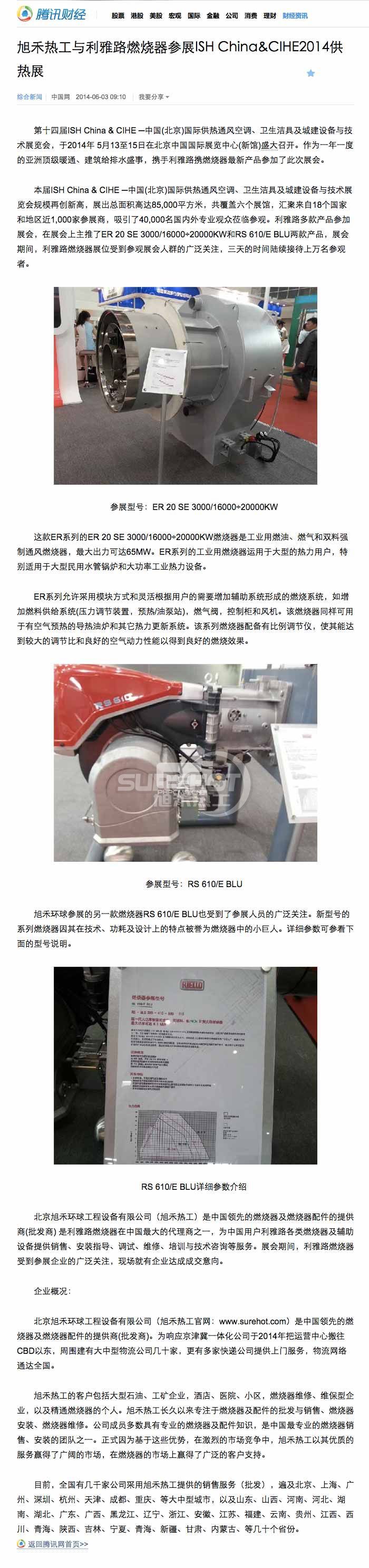 旭禾熱工與利雅路燃燒器參展ISH China&CIHE2014供熱展