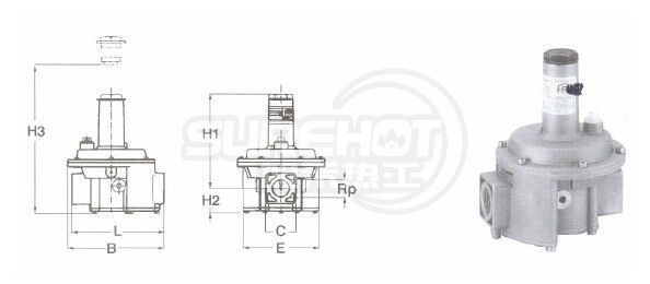 較大的輸入壓力1bar(100kpa,1公斤壓力);輸出壓力2.5-300mbar取決于可調的額定彈簧,彈簧可更換;螺紋接口;